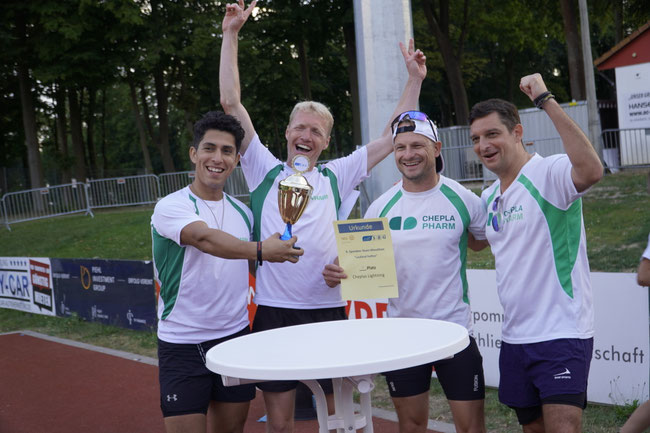 Rennen gestaltete sich von Beginn an sehr spannend. Das Team „Cheplas Lightning“ der Cheplapharm Arzneimittel GmbH übernahm von Beginn an die Führung. Das fünfköpfige Team „ambitioniert“ des